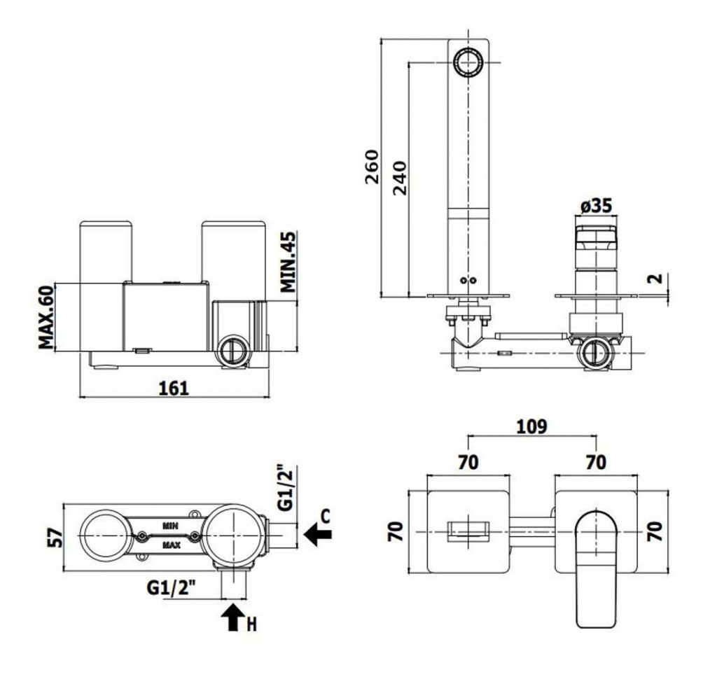 Instalace na montážní podomítkové těleso, které je součástí baterie.