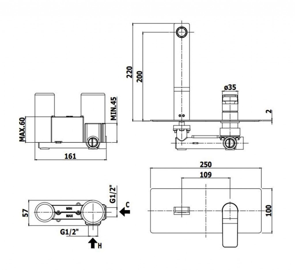 Instalace na montážní podomítkové těleso, které je součástí baterie.