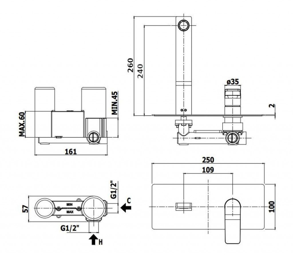 Instalace na montážní podomítkové těleso, které je součástí baterie.