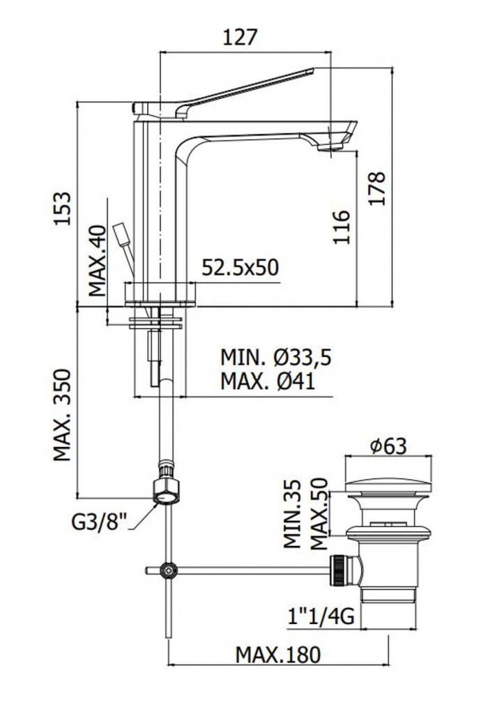 Stojánková umyvadlová baterie, s odtokovou soupravou