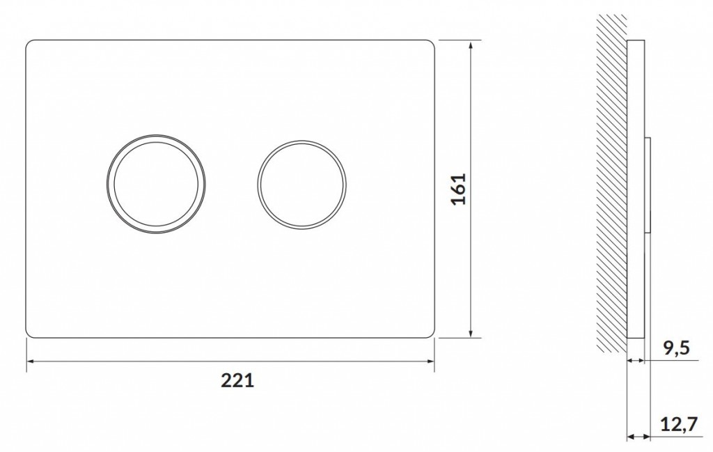 ACCENTO CIRCLE s kulatými tlačítky. Ovládání s větším rozsahem spláchnutí jemně vyčnívá nad povrch tlačítka a jeho okraj je zakončen zkosením. Tlačítko je určeno pro skryté rámy AQUA řady 5/ 7/ 9 a SYSTEM 5/ 7.