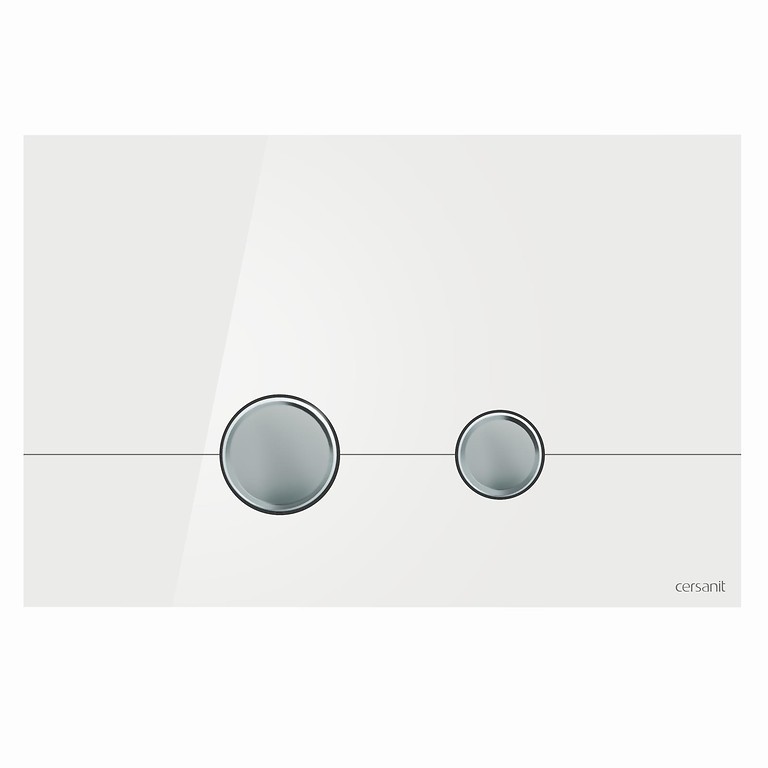 Obdélníková mechanická deska je vyrobena z bílého skla s mírně vypouklými tlačítky s chromovým lesklým povrchem. Tlačítko STERO je přizpůsoben pro mechanické splachování pomocí dvoudílného systému, který šetří vodu. Tlačítko se hodí pro skryté rámy AQUA 0/2/4, SYSTEM 0/2, HI-TEC a LINK. Pracuje s FRESH SYSTEM, což je ideální řešení ve spojení s technologií bez okrajů CleanOn.