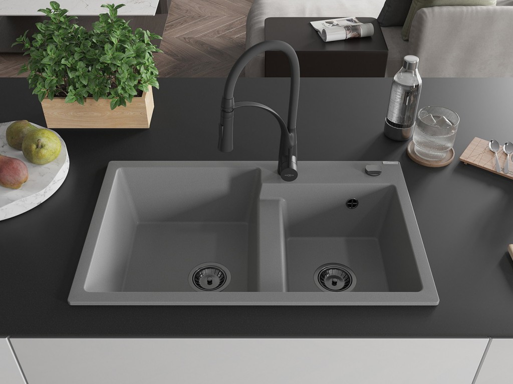 Speciální složení materiálu použitého pro výrobu je žula (80% žula – kámen, 20% pryskyřice) a jeho vysoká hustota garantuje bezpečné používání výrobku, a proto jsou granitové dřezy tak oblíbené. Díky povrchové úpravě nejsou na granitovém dřezu vidět zaschlé kapky, je odolný vůči skvrnám a neztrácí barvu. Povrch je odolný vůči nárazu, poškrábání, změně barvy, vysoké teplotě a teplotním šokům. Při jejich údržbě se používají obvyklé čistící prostředky nebo prostředky na nádobí s jemným abrasivem. Výhodou je rozmanitá barevná nabídka.