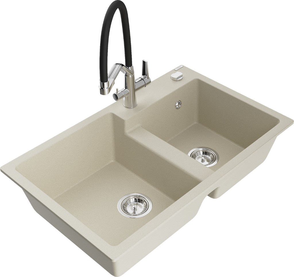 Speciální složení materiálu použitého pro výrobu je žula (80% žula – kámen, 20% pryskyřice) a jeho vysoká hustota garantuje bezpečné používání výrobku, a proto jsou granitové dřezy tak oblíbené. Díky povrchové úpravě nejsou na granitovém dřezu vidět zaschlé kapky, je odolný vůči skvrnám a neztrácí barvu. Povrch je odolný vůči nárazu, poškrábání, změně barvy, vysoké teplotě a teplotním šokům. Při jejich údržbě se používají obvyklé čistící prostředky nebo prostředky na nádobí s jemným abrasivem. Výhodou je rozmanitá barevná nabídka.