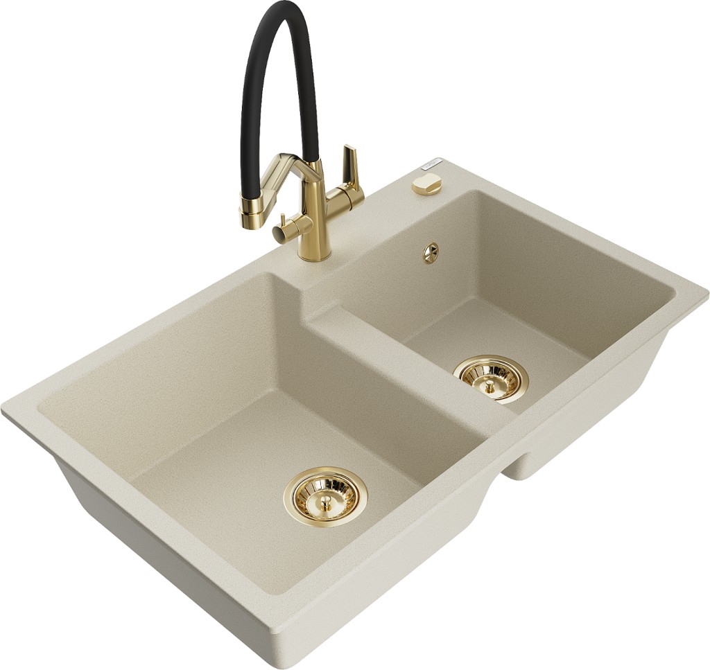 Speciální složení materiálu použitého pro výrobu je žula (80% žula – kámen, 20% pryskyřice) a jeho vysoká hustota garantuje bezpečné používání výrobku, a proto jsou granitové dřezy tak oblíbené. Díky povrchové úpravě nejsou na granitovém dřezu vidět zaschlé kapky, je odolný vůči skvrnám a neztrácí barvu. Povrch je odolný vůči nárazu, poškrábání, změně barvy, vysoké teplotě a teplotním šokům. Při jejich údržbě se používají obvyklé čistící prostředky nebo prostředky na nádobí s jemným abrasivem. Výhodou je rozmanitá barevná nabídka.