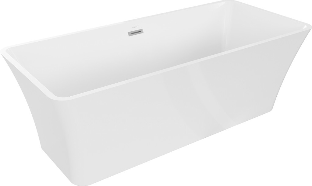 Volně stojící obdélníková akrylátová vana série Tonia od výrobce MEXEN s přepadem a umístěném odpadu na středu vany.