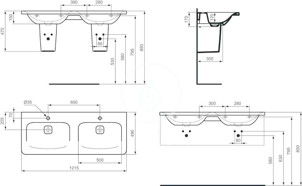 Pro kombinaci se skříňkami pod umyvadla (kromě Tonic II), nábytkovou konzolí, polosloupem nebo designovým sifonem.