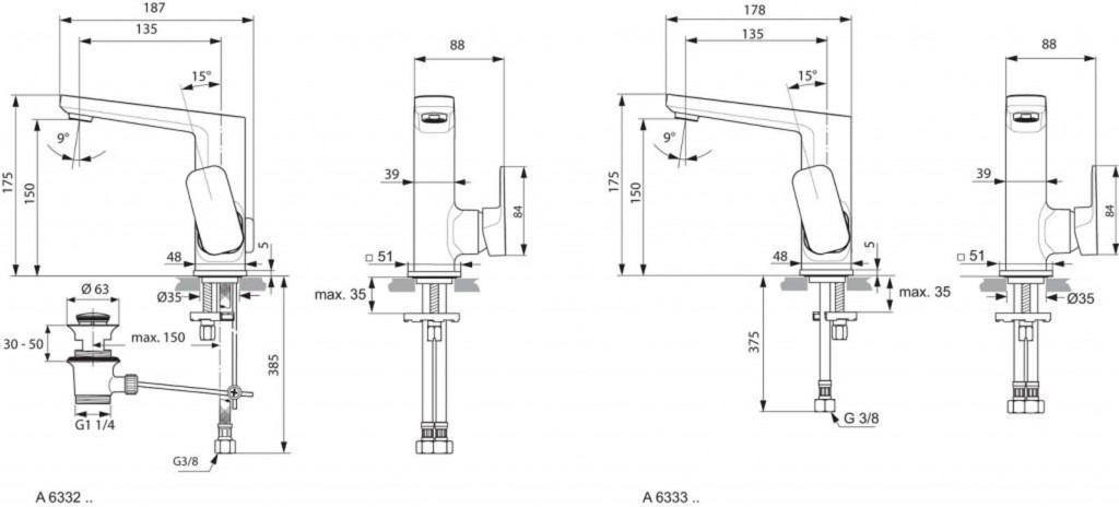 - nastavitelný směr proudu vody v úhlu 9° +/- 10°