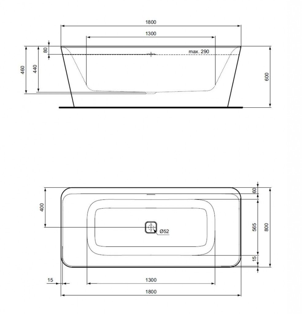 - odtok uprostřed, průměr 52 mm, barevné provedení chrom