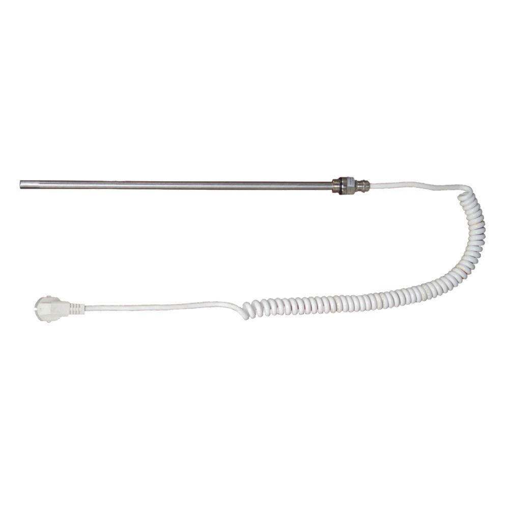 Elektrická topná tyč bez termostatu slouží k vytápění koupelnových radiátorů - žebříků. Tato topná tyč po zapnutí tělesa do zásuvky nemá žádnou regulaci ani termostat a hřeje dokud ji nevypnete. Termostat pod označením MT99 je možné zakoupit samostatně. Délka kabelu u topné tyče je 0,9 - 1,6 m a je zakončena vidlicí s ochranným kolíkem.