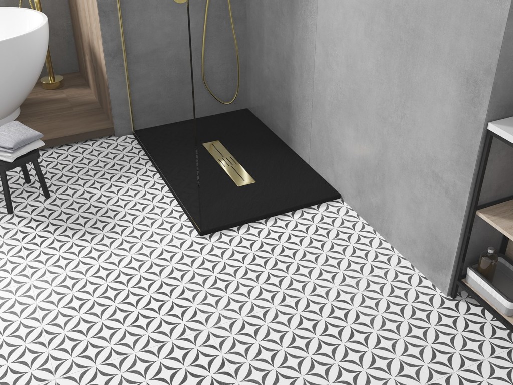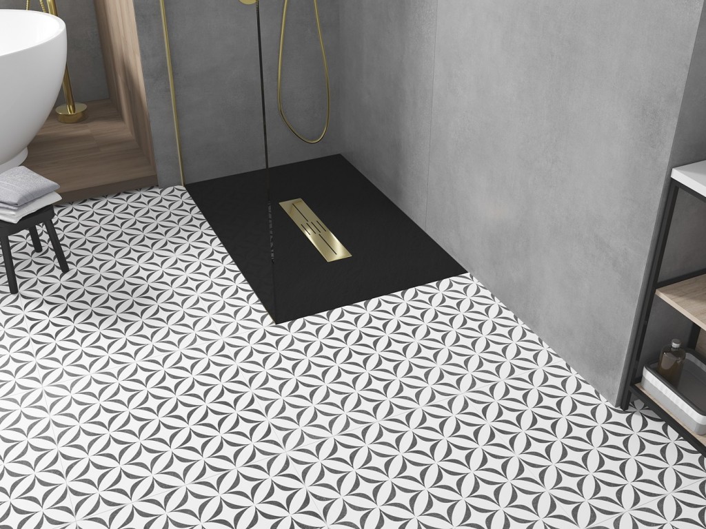 Sprchová vanička TORO je dostupná v barevných variantách: bílá a černá. Vybrat lze i z obdélníkových, krytech odtoku, v nabídce jsou v barevném provedení: chrom, zlato, černá a bílá.