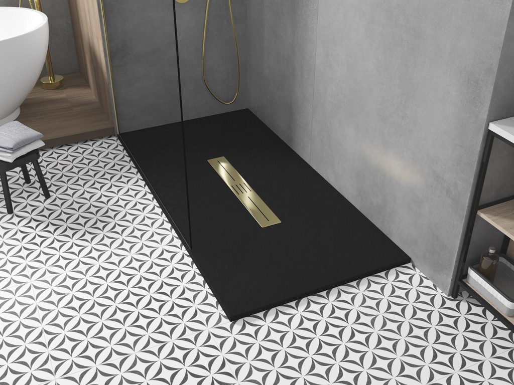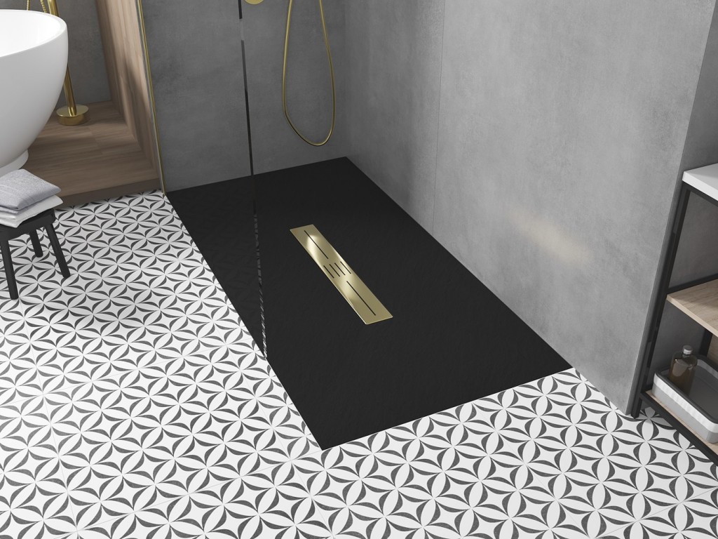 Sprchová vanička TORO je dostupná v barevných variantách: bílá a černá. Vybrat lze i z obdélníkových, krytech odtoku, v nabídce jsou v barevném provedení: chrom, zlato, černá a bílá.
