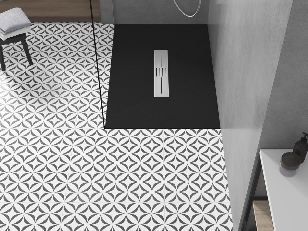 Sprchová vanička TORO je dostupná v barevných variantách: bílá a černá. Vybrat lze i z obdélníkových, krytech odtoku, v nabídce jsou v barevném provedení: chrom, zlato, černá a bílá.