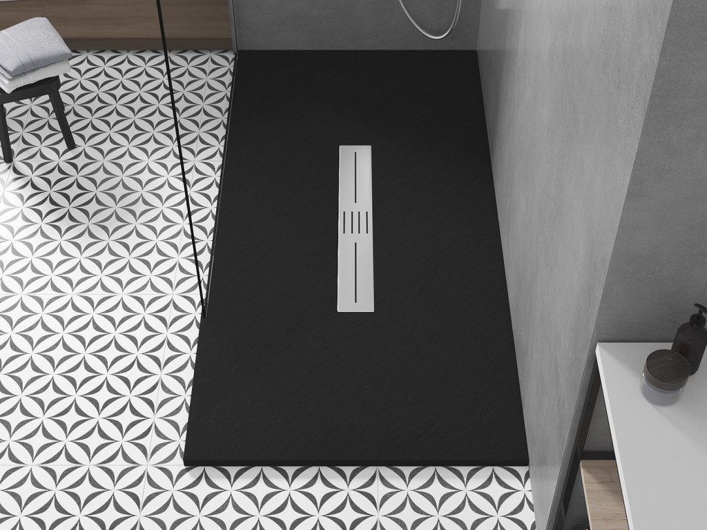 Sprchová vanička TORO je dostupná v barevných variantách: bílá a černá. Vybrat lze i z obdélníkových, krytech odtoku, v nabídce jsou v barevném provedení: chrom, zlato, černá a bílá.