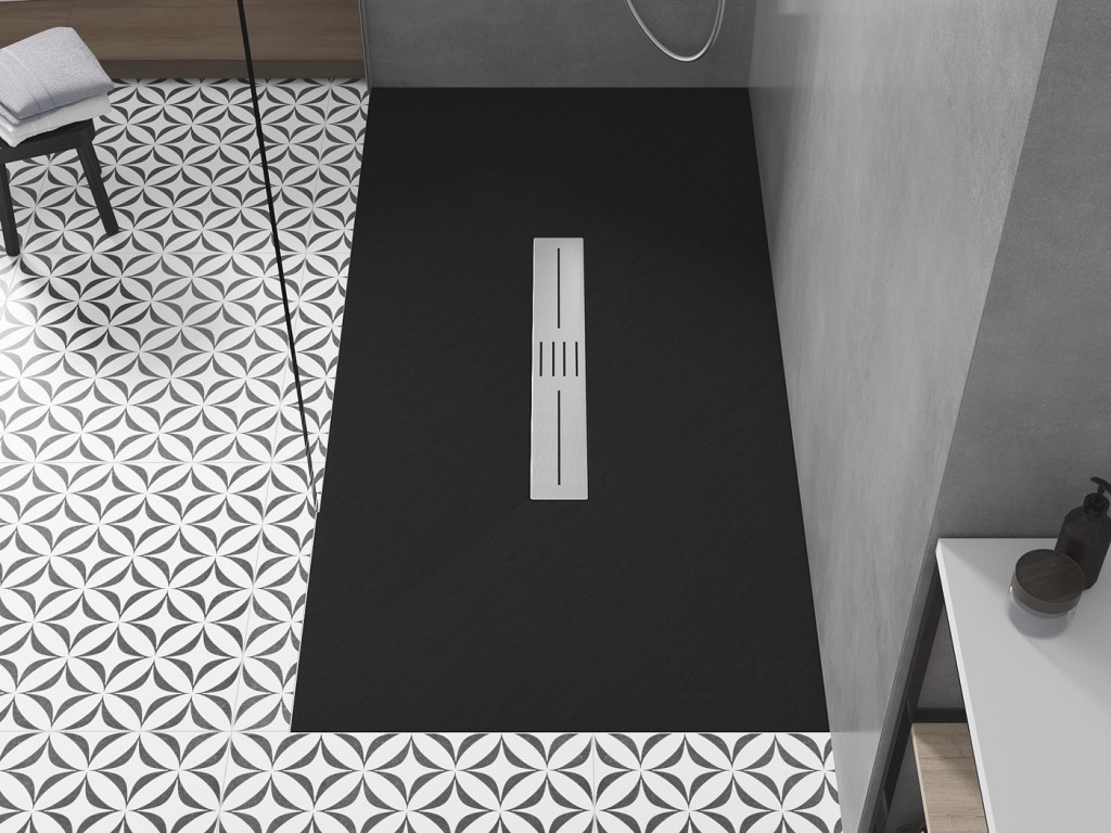 Sprchová vanička TORO je dostupná v barevných variantách: bílá a černá. Vybrat lze i z obdélníkových, krytech odtoku, v nabídce jsou v barevném provedení: chrom, zlato, černá a bílá.