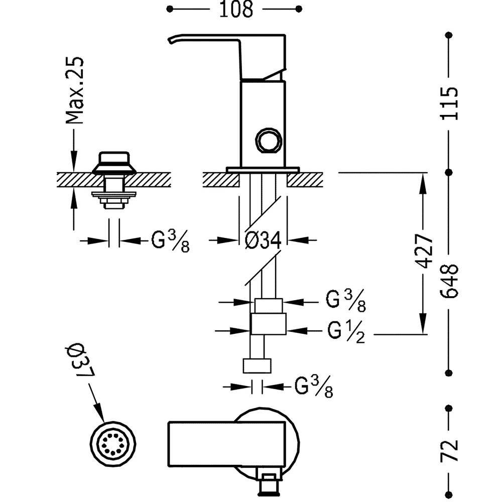TRES CUADRO chrom bidetová baterie se sprškou 00613001