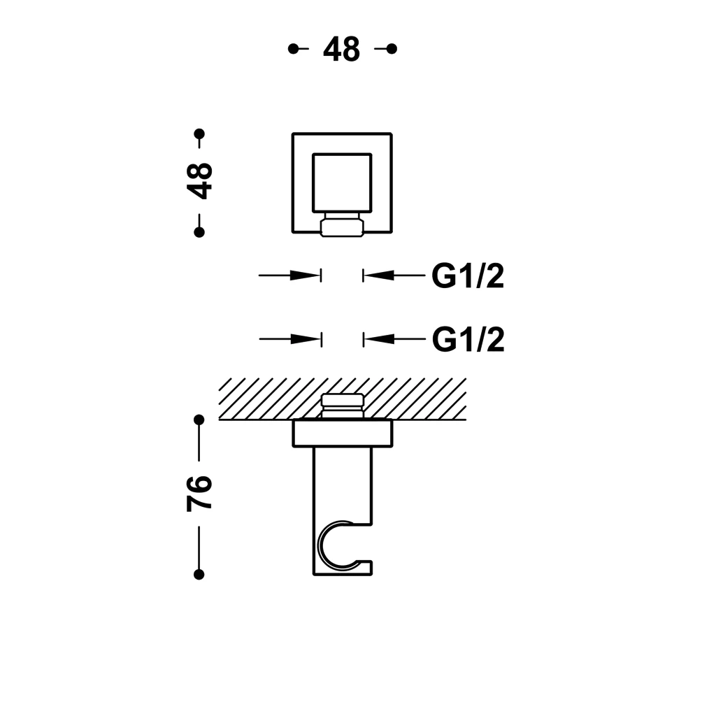 Tres držák sprchy černá mat s přípojem vody, hranatý, hranatá růžice, TRES 00618201NM