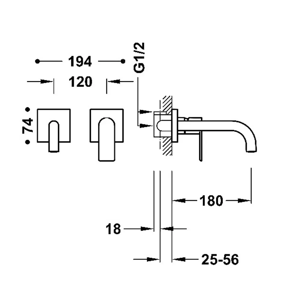 TRES LOFT černá-mat Umyvadlová baterie podomítková, ramínko 180 mm 20030001NM