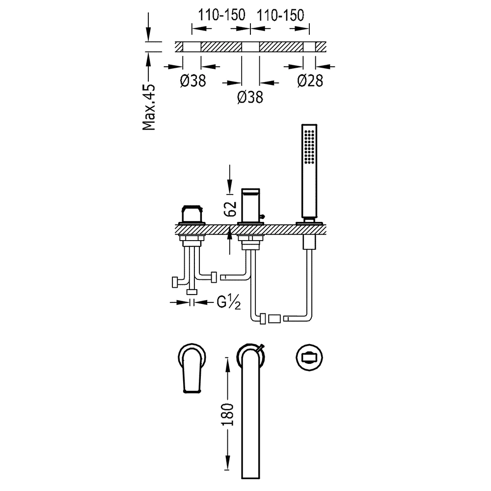 TRES PROJECT bílá-mat Vanová baterie stojánková 21116101BM