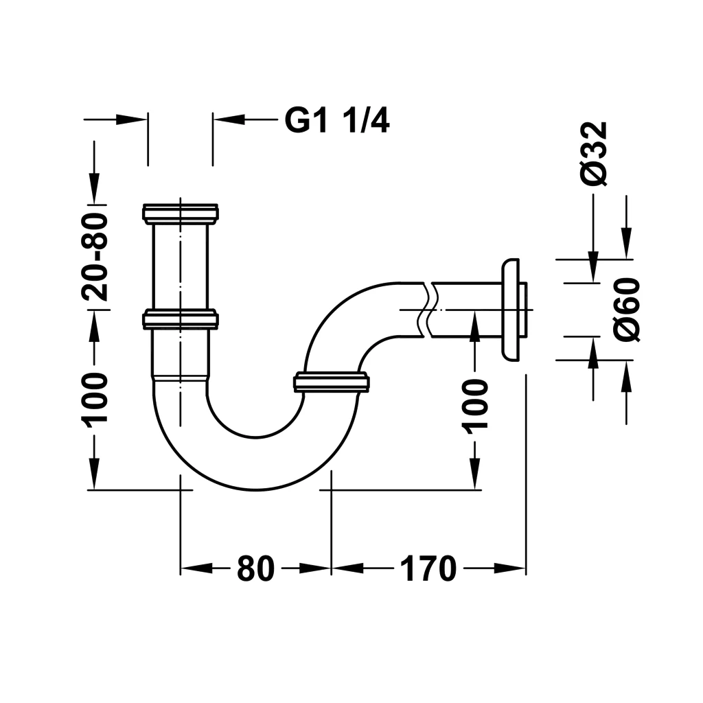 TRES sifon chrom trubkový 5/4" x 32mm 13463810