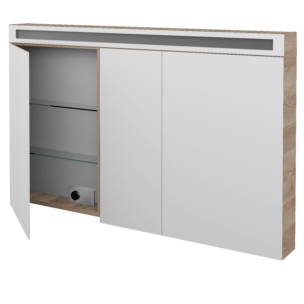 Parametry galerkyZrcadlová skříňka AIR GA3OE 130 je vyrobena ve trojdveřovém provedení s oboustrannými zrcadly. Ta jsou ke korpusu připevněna pomocí značkových pantů Grass, které jsou k zrcadlům přichyceny pomocí speciální, patentem chráněné a v Dřevojasu zkonstruované, kovové lišty.