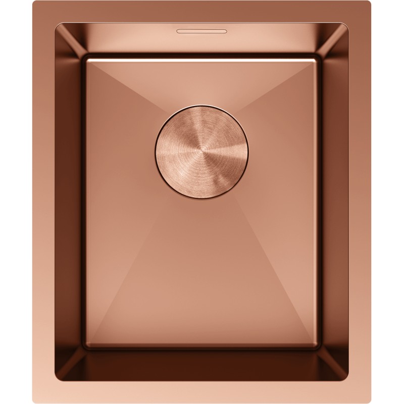 Specifikace produktu: Rozměr: 370x440x200 mm Hloubka dřezu: 200 mm Rozměry dřezu: 390x320 mm Tloušťka ocelového hran dřezu: 3 mm Tloušťka ocelového hran dřezu: 1 mm Poloměr zaoblení rohů dřezu: R10 Průměr odtoku: ø92 mm Typ: 1-dřez Typ: Zapuštěný, Pod desku Materiál: Nerezová ocel AISI 304 Barva: Měď Povrch: Hladký Povrchová úprava sifonu: Měď Přepadový otvor: Ano Otvor pro baterii: Ne Ruční sifon s odpadkovým košem a zátkou Přídavný kryt odtoku Skrytý přepadový otvor Zvukově izolační rohože k dřezu Odolnost vůči nárazům, poškrábání a změně barvy Odolnost vůči vysokým teplotám a tepelným šokům Povrch pro snadné čištění
