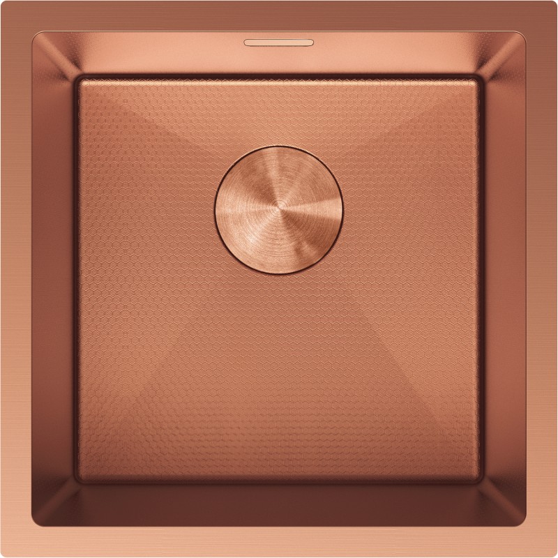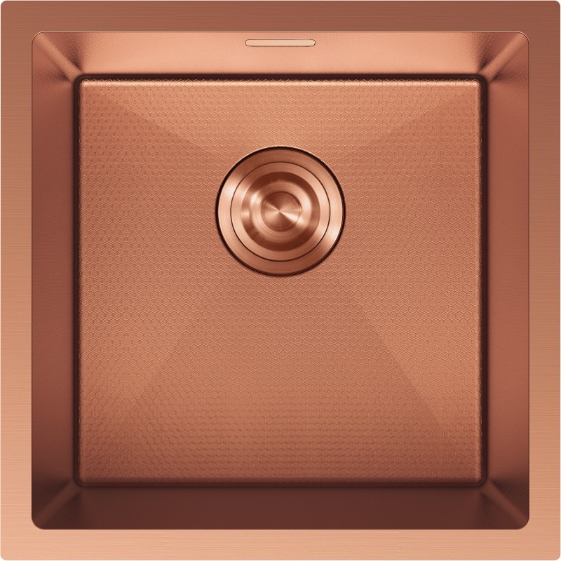 Specifikace produktu: Rozměr: 440x440x200 mm Hloubka dřezu: 200 mm Rozměry dřezu: 390x390 mm Tloušťka ocelového hran dřezu: 3 mm Tloušťka ocelového hran dřezu: 1 mm Poloměr zaoblení rohů dřezu: R10 Průměr odtoku: ø92 mm Typ: 1-dřez Typ: Vestavný, Pod desku Materiál: Nerezová ocel AISI 304 Barva: Měď Povrch: Voština Povrchová úprava sifonu: Měď Otvor pro přepad: Ano Otvor pro baterii: Ne Ruční sifon s odpadkovým košem a zátkou Přídavný kryt odtoku Skrytý otvor pro přepad Zvukově izolační rohože k dřezu Odolnost vůči nárazům, poškrábání a změně barvy Odolnost vůči vysokým teplotám a tepelným šokům Snadno čistitelný povrch