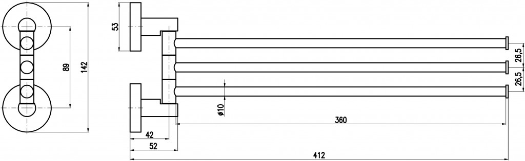 Chromový trojitý držák ručníků doladí vzhled každé koupelny. Tím, že je otočný, není jen pěkný na pohled, ale je i velice praktický.