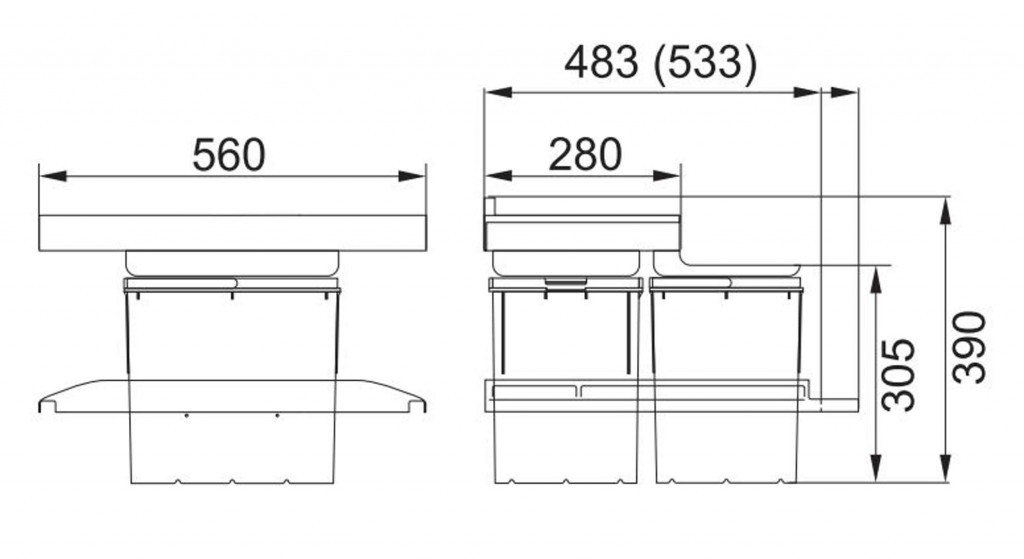 - 3 koše: 2x 8 l, 1x 18 l