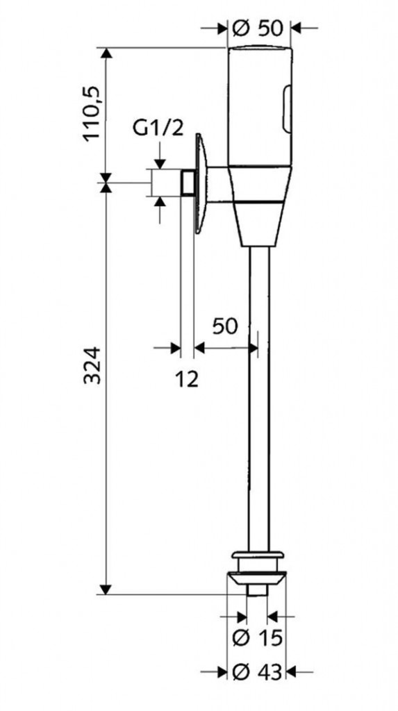 Nástrčný splachovač pisoáru na bateriový provoz s předuzávěrem a přerušovačem trubky