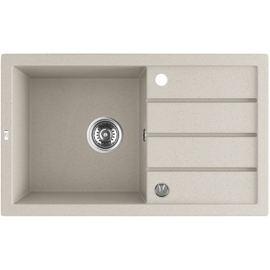Dřez Trzynastka je moderním řešením pro elegantní domy a byty. Jeho krásné linie a všestranné barvy nepochybně přitahují pozornost. Díky minimalistickému designu je Trzynastka věčně mladým produktem, který se přizpůsobuje měnícím se trendům v interiérovém designu. Nabízí tři modely, každý ve třech povrchových úpravách: béžová, šedá a černá. Prvním je model s jedním dřezem, dostupný v kompaktním rozměru 44x44 cm, s hlubokou dřezem o průměru 17 cm – ideální řešení pro malé kuchyně bytového stylu. Další možností je jednodřez s odkapávačem ve standardním rozměru 48x79 cm – odkapávač funguje perfektně jako prodloužení pracovní desky. Řada zahrnuje také jednodřez s poloviční odkapávací lištou. Tento kompaktní model je ideální pro malé kuchyně. Prostorově úsporný odtok, který je součástí dřezu, umožňuje pohodlnou organizaci prostoru ve skříňkách, například pro tříděné koše. Žula použitá při jeho konstrukci zaručuje odolnost vůči změně barvy, poškrábání, nárazům, tepelným šokům a teplotám až do 250 °C. Výrobce nabízí na tento výrobek desetiletou záruku. Vyrobeno v Polsku.