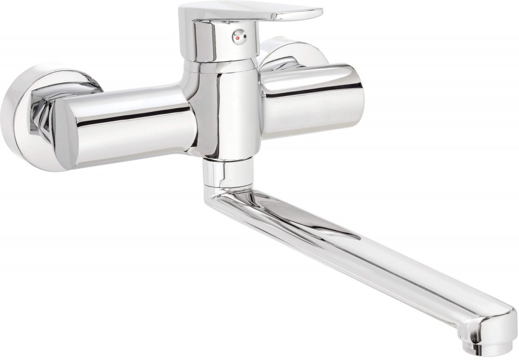 Nástěnná dřezová baterie série TUBO, se vyznačuje solidním zpracováním a nadčasovým chromovým povrchem. Mosazné tělo, keramická kartuš a nerezový otočný výtok zajišťují odolnost a spolehlivost produktu. Baterie je vybavena perlátorem, který provzdušňuje proud vody a tím snižuje spotřebu vody. Lesklý povrch dodá punc elegance jak klasickým, tak i moderním kuchyním.