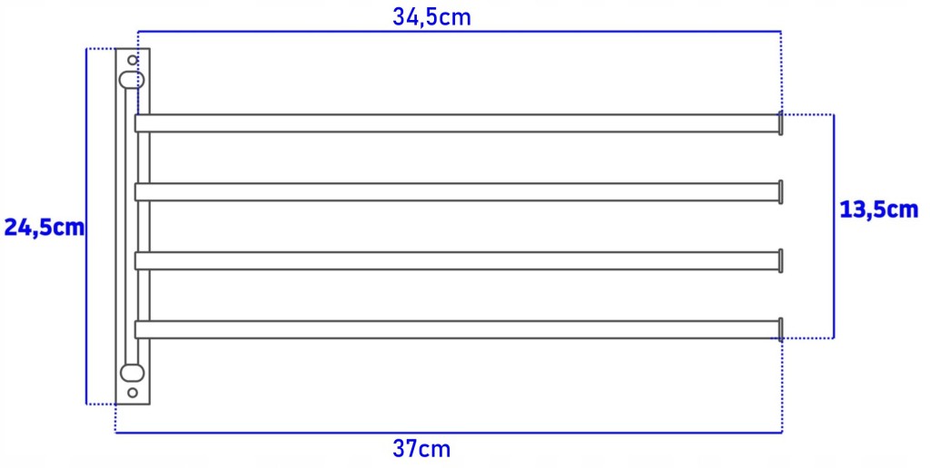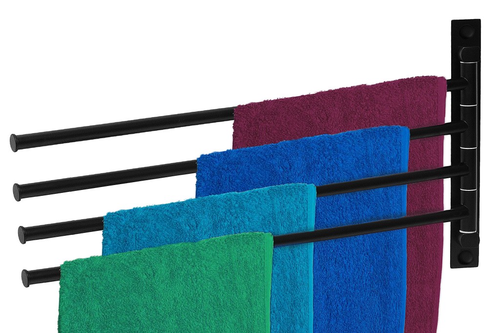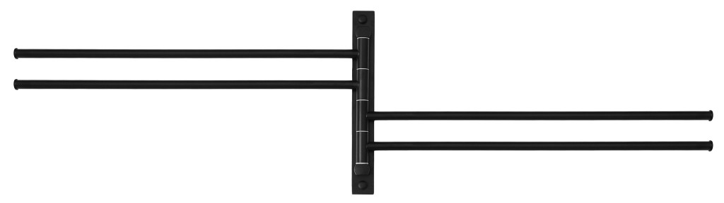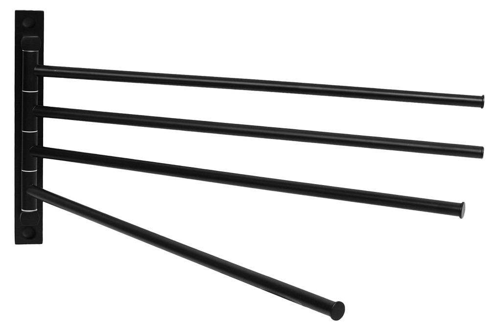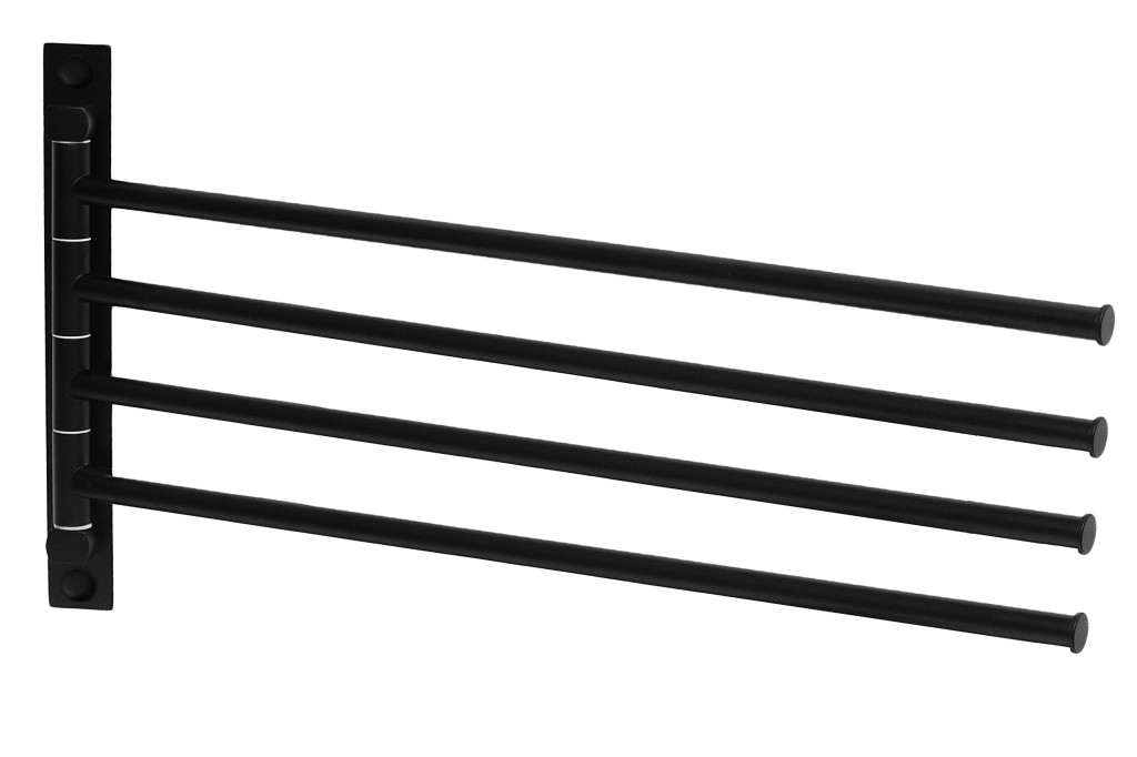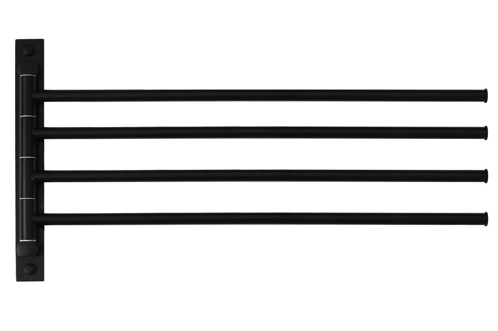Elegantní černý koupelnový věšák na ručníky. Konstrukce se skládá ze 4 nezávislých ramen, která lze nastavit nebo zcela sklopit na obě strany. Věšák se díky svému modernímu designu perfektně hodí do každého stylu povrchové úpravy koupelny.