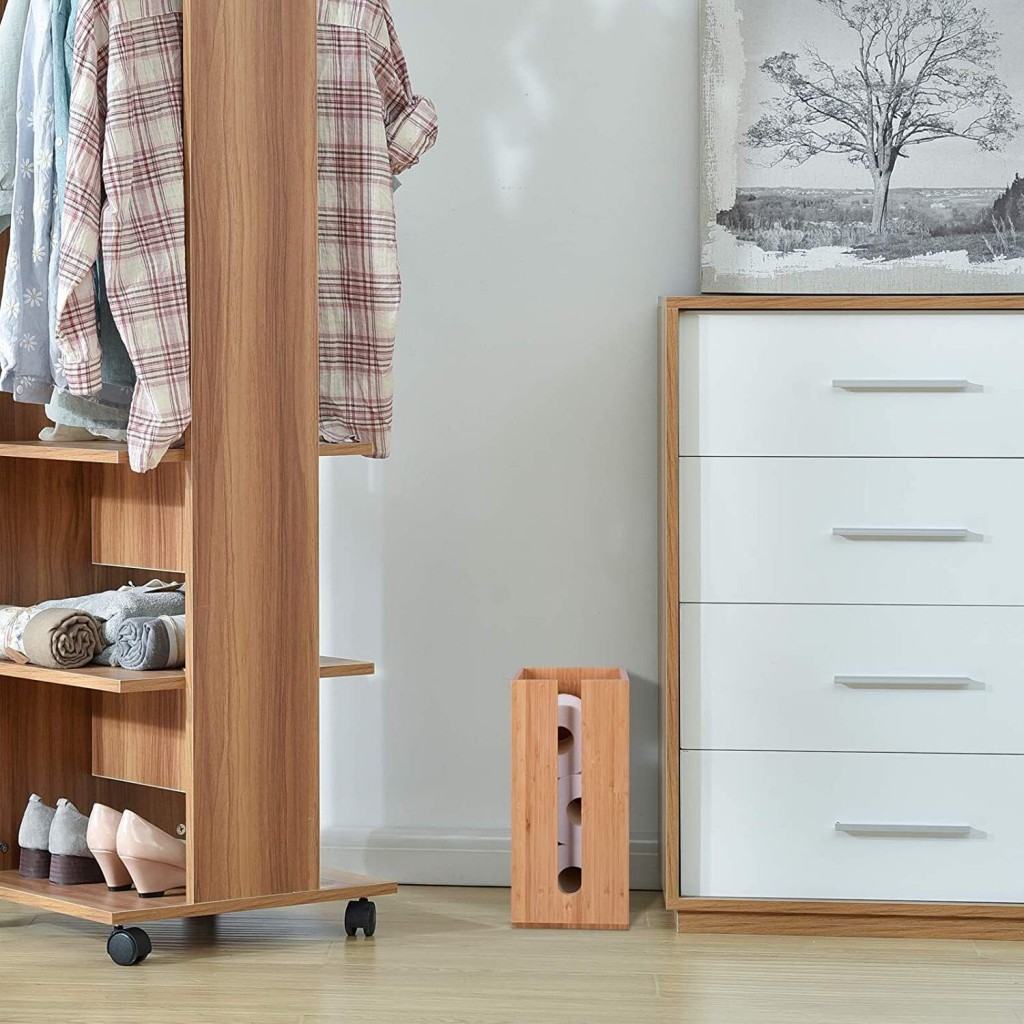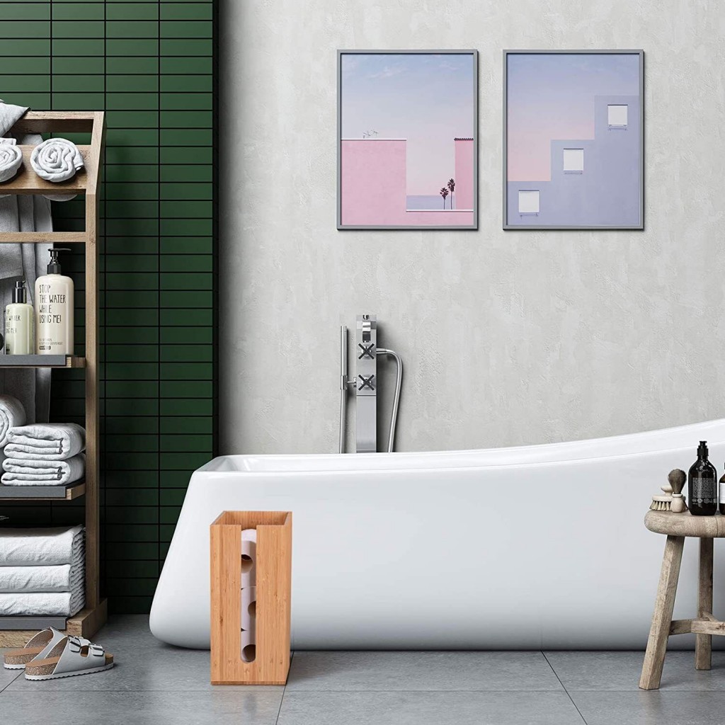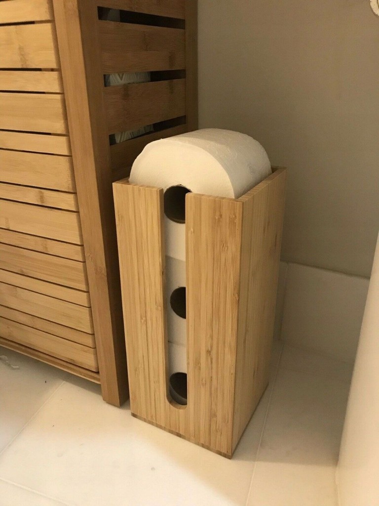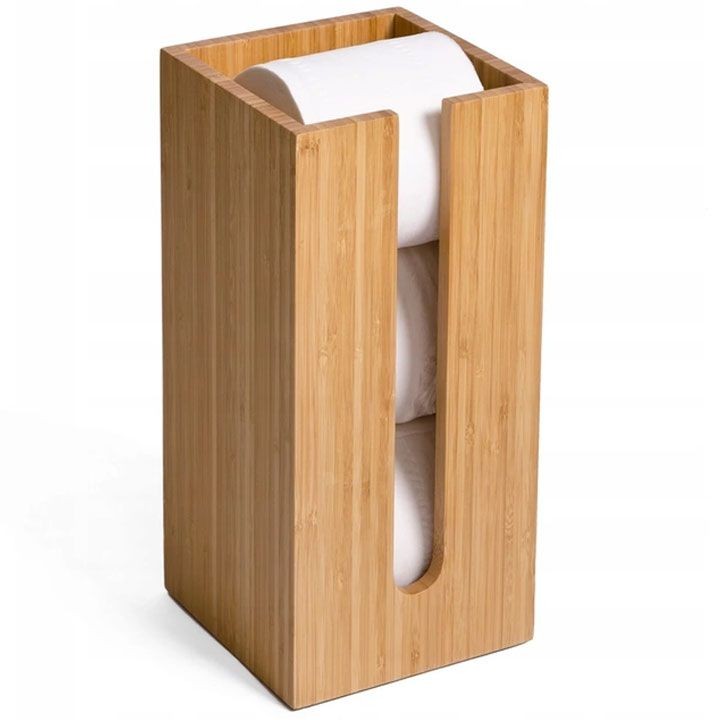 Vytvořit hezké místo pro zásobu toaletního papíru je těžké. Většinou sestavujeme nevzhledný, věčně padající komínek, díváme se na křiklavě potištěný obal nebo všechny role uklidíme do skříňky, která je v případě potřeby snad kilometr vzdálená. Bambusový držák toaletního papíru Tutumi je skvělý pro navození příjemné atmosféry, doplnění ostatních dřevěných prvků a pojme dostačující zásobu papíru.
