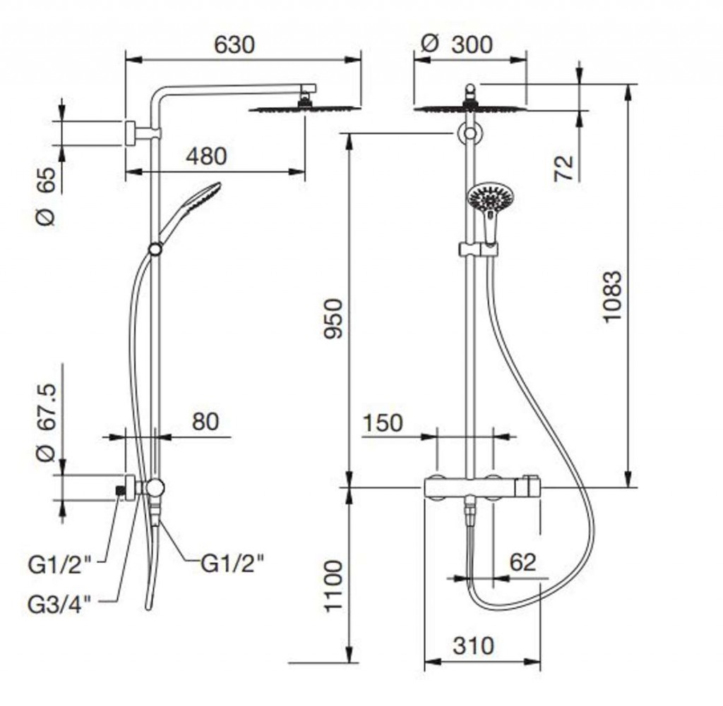 sprchovou hadici 1500 mm, sprchovou tyč a držák sprchy