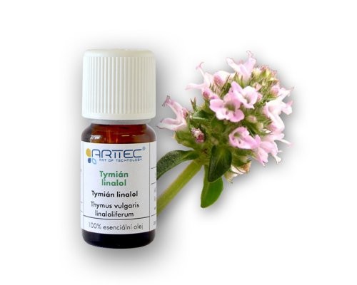 Esenciální olej Tymián linalol je extrahován divoce rostoucího druhu tymiánu obsahujícího celou řadu účinných látek, který je původní bylinou západního Středomoří a jižní Evropy. Tymián je jednou z nejstarších užitkových rostlin, pěstovali ho již v Sumeru (3.000 př.n.l.), jeho vlastnosti byly známy ve starém Egyptě, kde byla silice používána do balzamovacích přípravků, antičtí Řekové a Římané ho, mimo jiné používali jako koření. To je také v současnosti jeho z hlavních použití, kde zastupuje také konzervační a proti plísňovou složku. Není potřeba zdůrazňovat jeho úlohu v cukrářské výrobě, likérnictví, v kosmetice, při výrobě toaletních potřeb, mýdla, čistících prostředků a v neposlední řadě i repelentů proti hmyzu. Působení silice je jemnější a srovnatelné s ostatními druhy silic získávaných z ostatních druhů tymiánu. Z tohoto důvodu má tato silice široké pole použití a její aplikace je vhodná i pro děti.