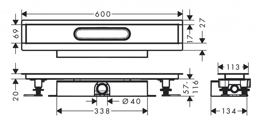 - instalační délka: 600 mm