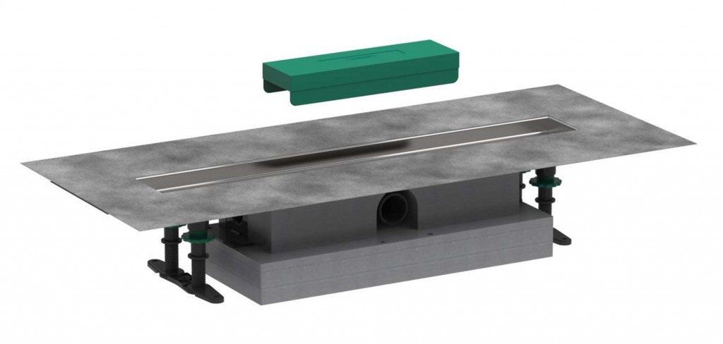Pro kompletní výrobek je nutné objednat rozměrově vhodný sprchový žlab s roštem, který není součástí dodávky.