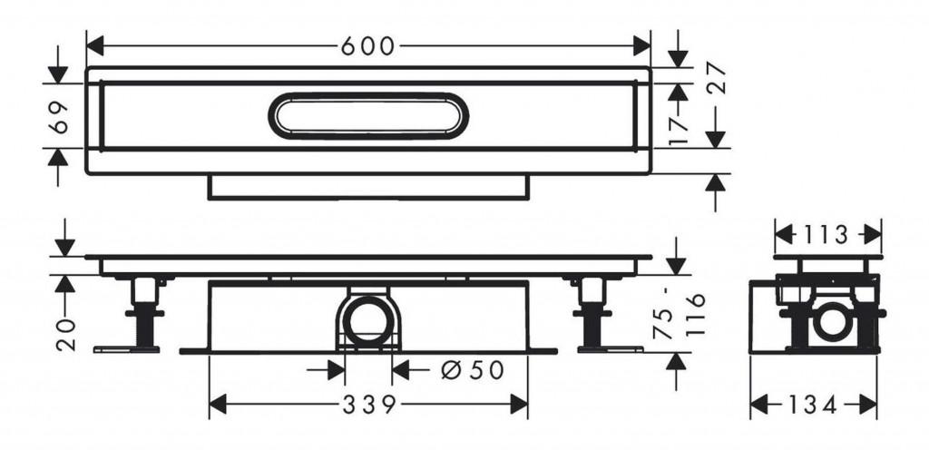 Kompletní sada pro standardní instalaci lineárního sprchového žlabu uBox universal 600