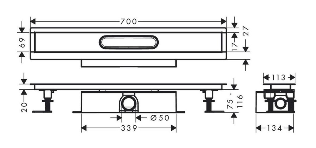 Kompletní sada pro standardní instalaci lineárního sprchového žlabu uBox universal 700