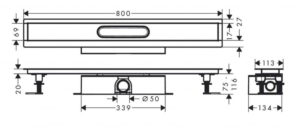Kompletní sada pro standardní instalaci lineárního sprchového žlabu uBox universal 800