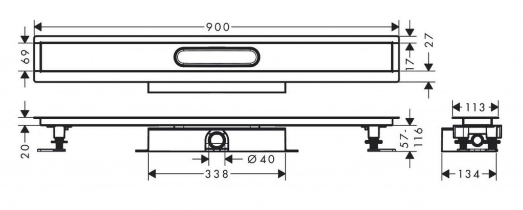 Kompletní sada pro plochou instalaci lineárního sprchového žlabu uBox universal 900