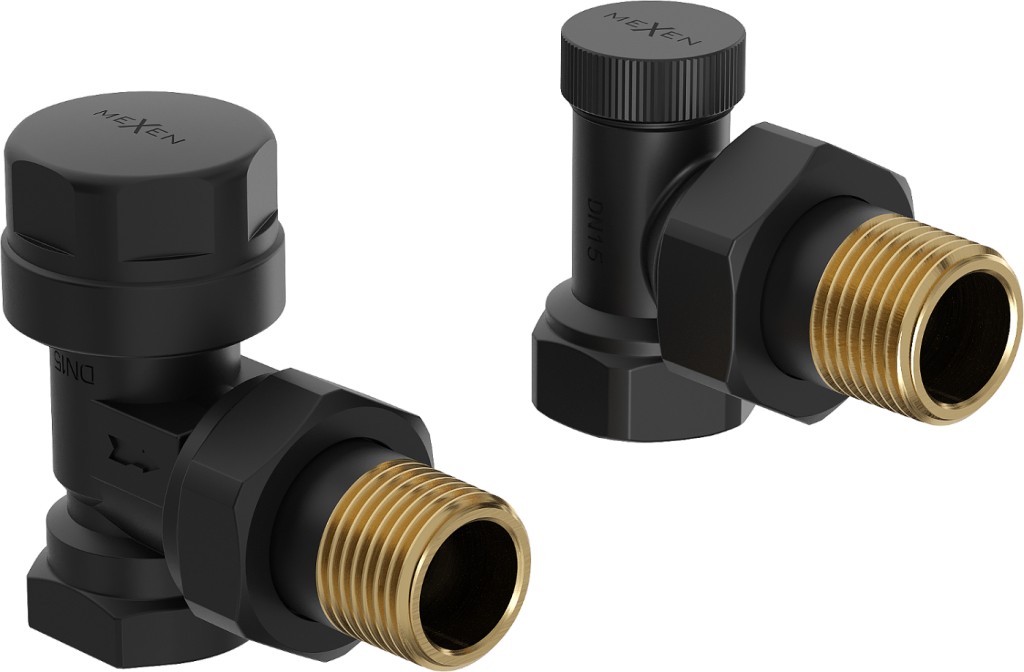 Uni-Term úhlové ventily pro radiátor s bočním připojením, mosazný. Tento ventil je dostupný v barevných provedení: černá, chrom, bílá, antracit a zlato.