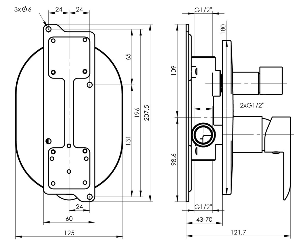 - Podomítková sprchová baterie včetně podomítkového modulu, 2- cestná