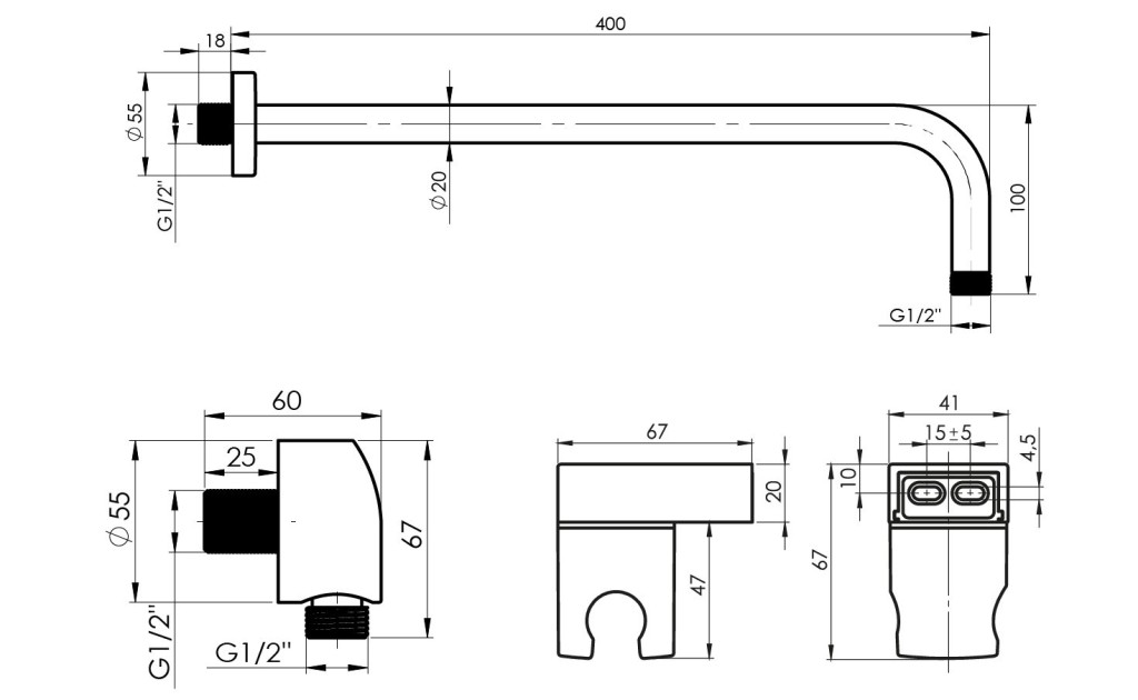 - Vývod ze zdi pro ruční sprchu