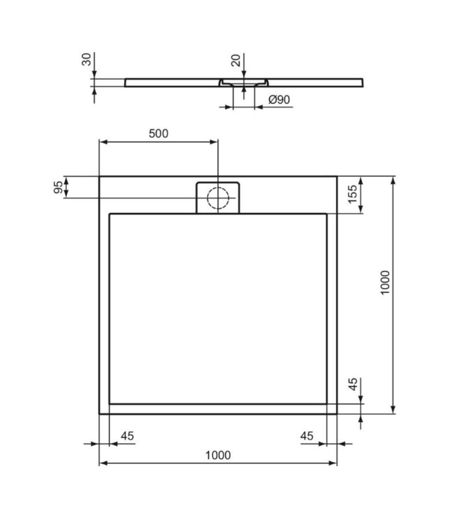 Čtvercová sprchová vanička