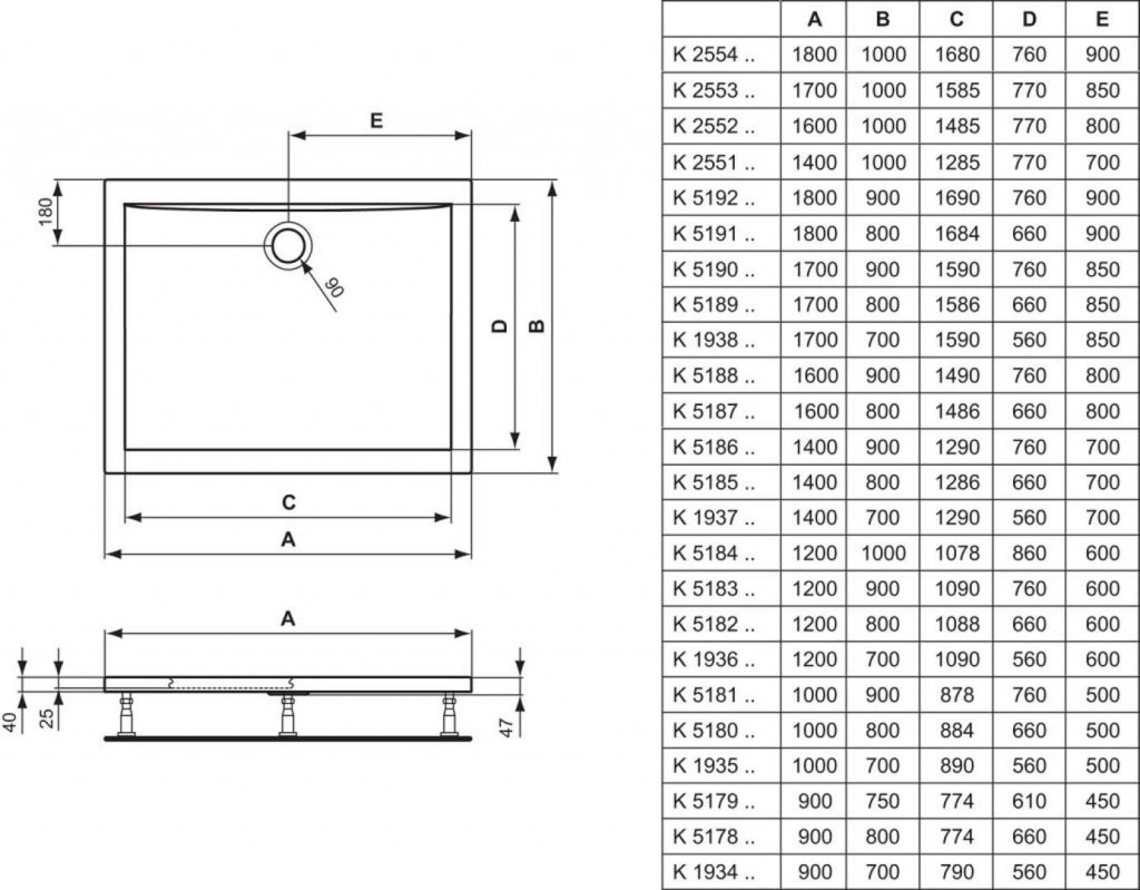 Ultra Flat obdélníková sprchová vanička ze sanitárního akrylátu.