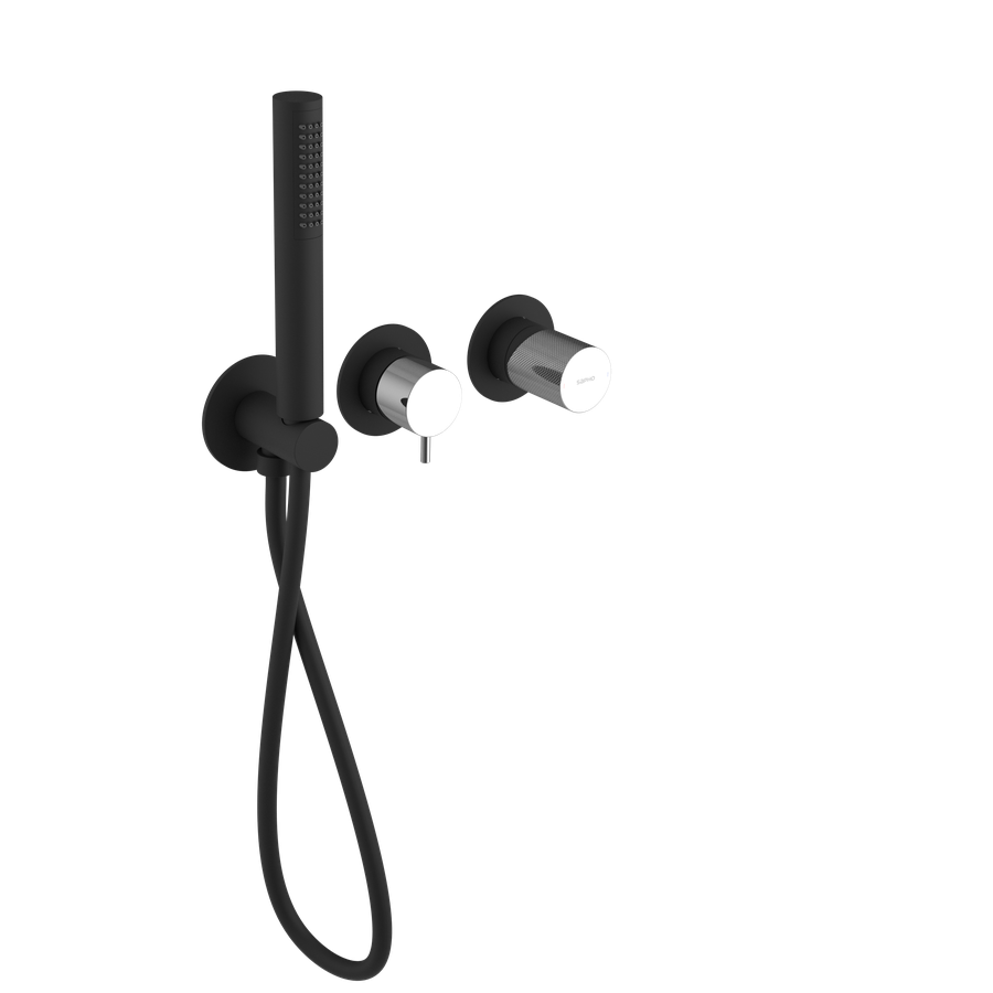 SAPHO - ULTRATAP podomítková sprchová/vanová baterie s ruční sprchou, 2 výstupy, černá mat/chrom (UT045TBC)