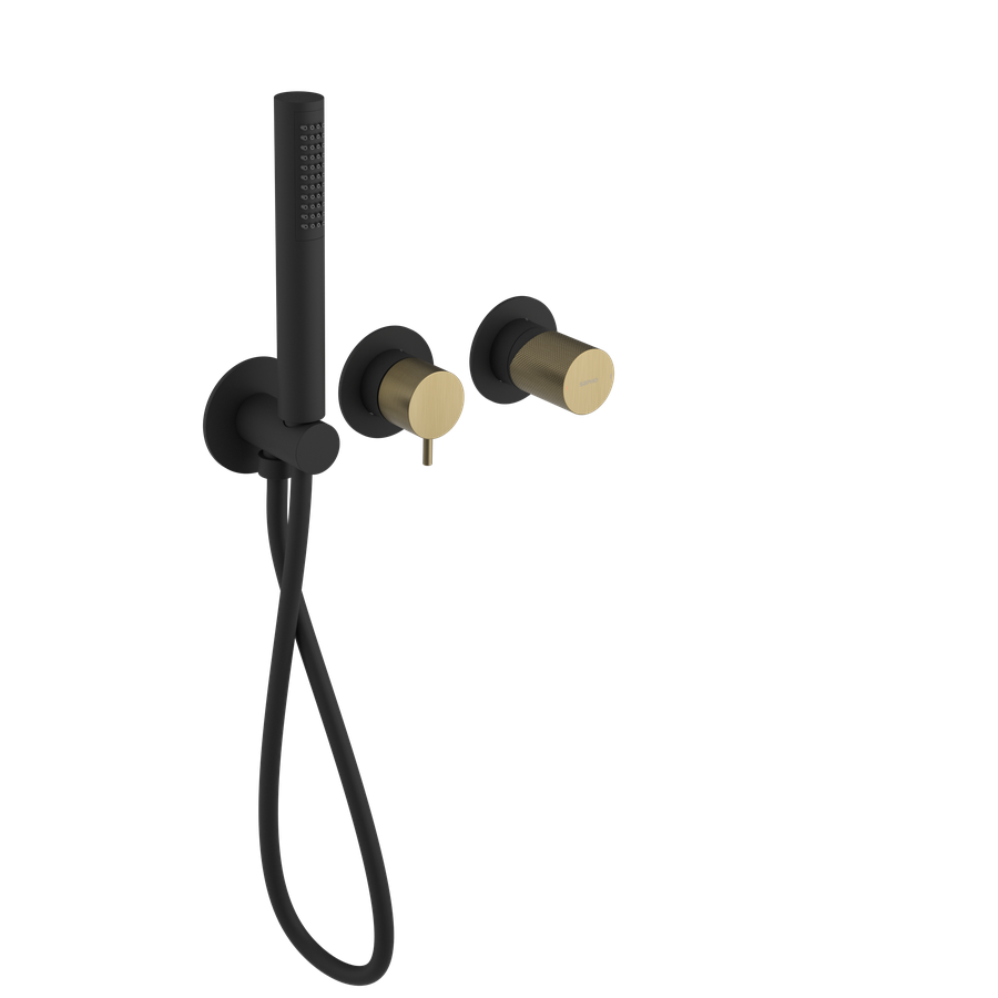 SAPHO - ULTRATAP podomítková sprchová/vanová baterie s ruční sprchou, 2 výstupy, černá mat/zlato mat (UT045TBG)