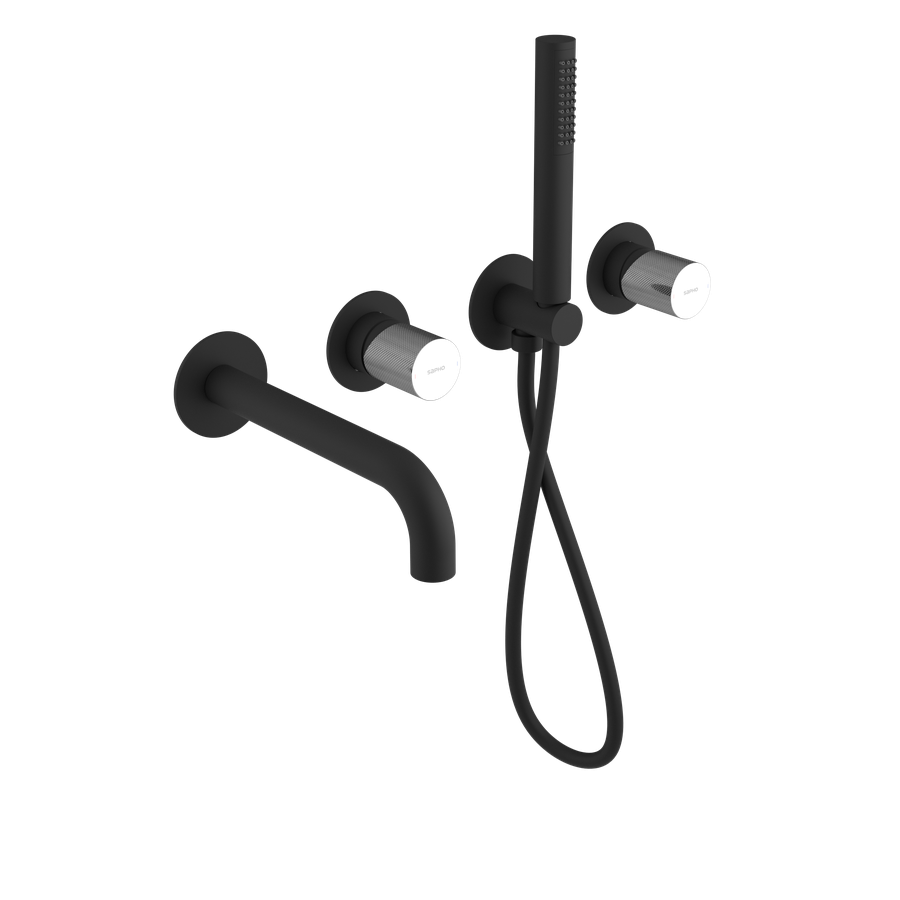 SAPHO - ULTRATAP podomítková vanová baterie s hubicí a ruční sprchou, 2 výstupy, černá mat/chrom (UT093TBC)